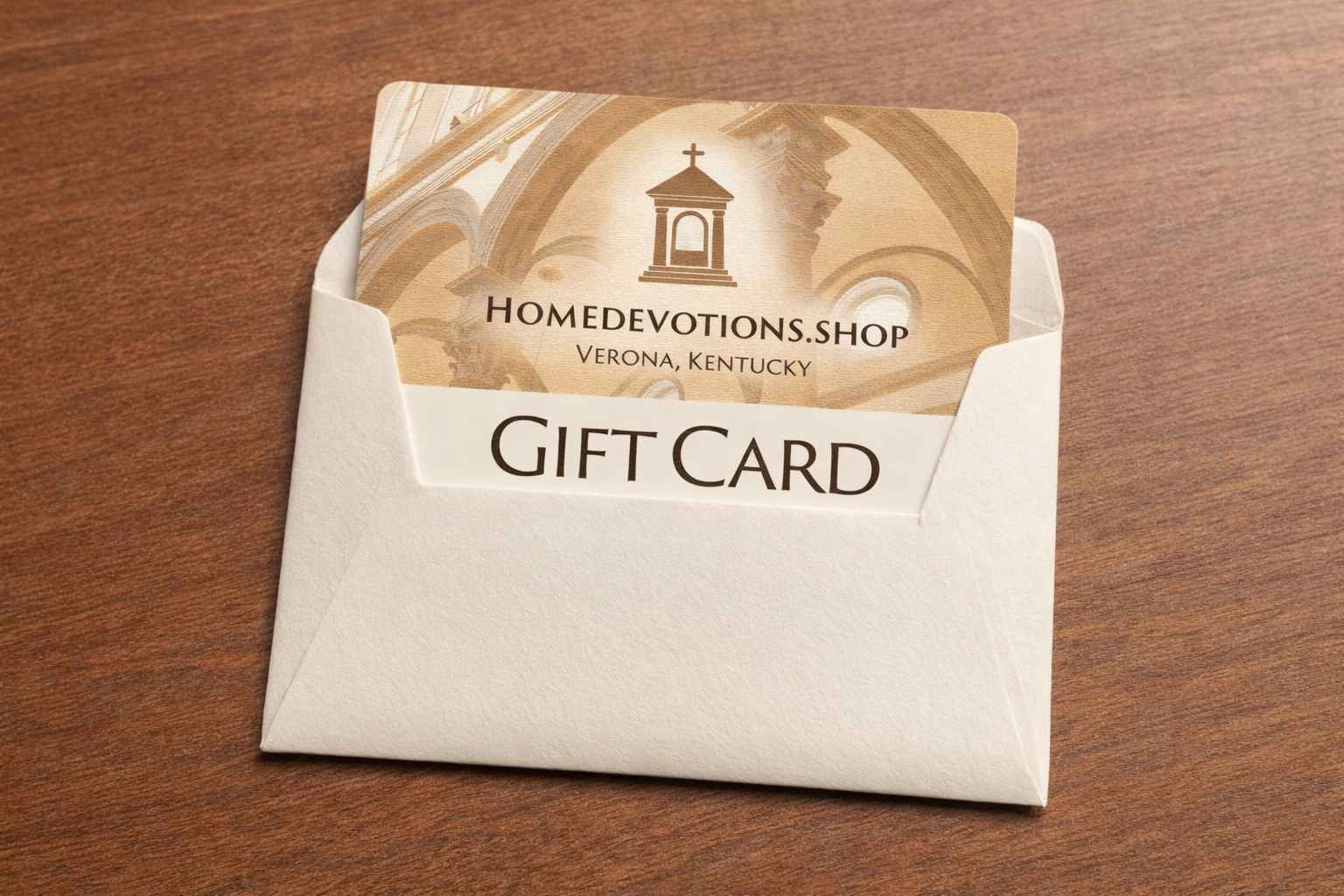 A Home Devotions Gift Card allows the recipient to select a handcrafted piece that fits their home, prayer life, and space, whether that’s a small wall shrine, a kneeler, or a larger devotional furnishing.